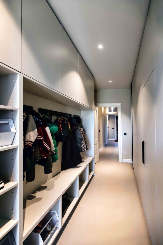 Voor dit project aan de Leidseweg in Utrecht werd het volledige interieur gerealiseerd, inclusief keuken, ensuite, kastenwerk en badkamermeubel. Zowel de keuken als de ensuite zijn uitgevoerd in eikenhout en afgewerkt met verfijnd spuitwerk, wat bijdraagt aan een strakke en tijdloze uitstraling. De detaillering is van uitzonderlijk hoog niveau, wat het vakmanschap van dit project benadrukt.